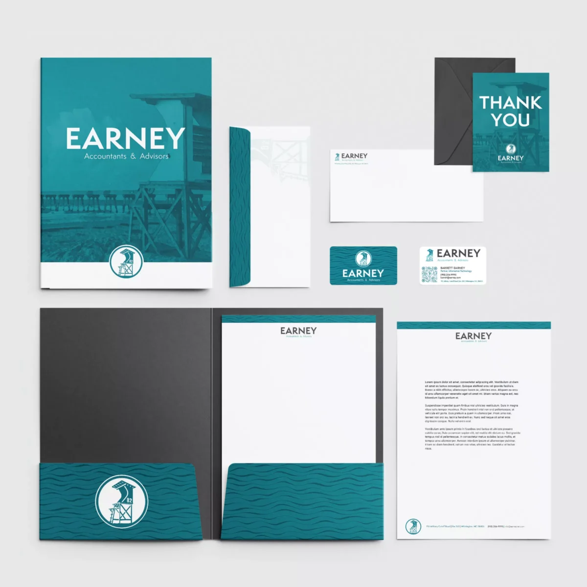We created a logo that ties Earney’s coastal roots to the trust and reliability they provide as financial advisors. The custom lifeguard stand serves as a visual anchor, representing guidance, oversight, and a steady presence clients can rely on.