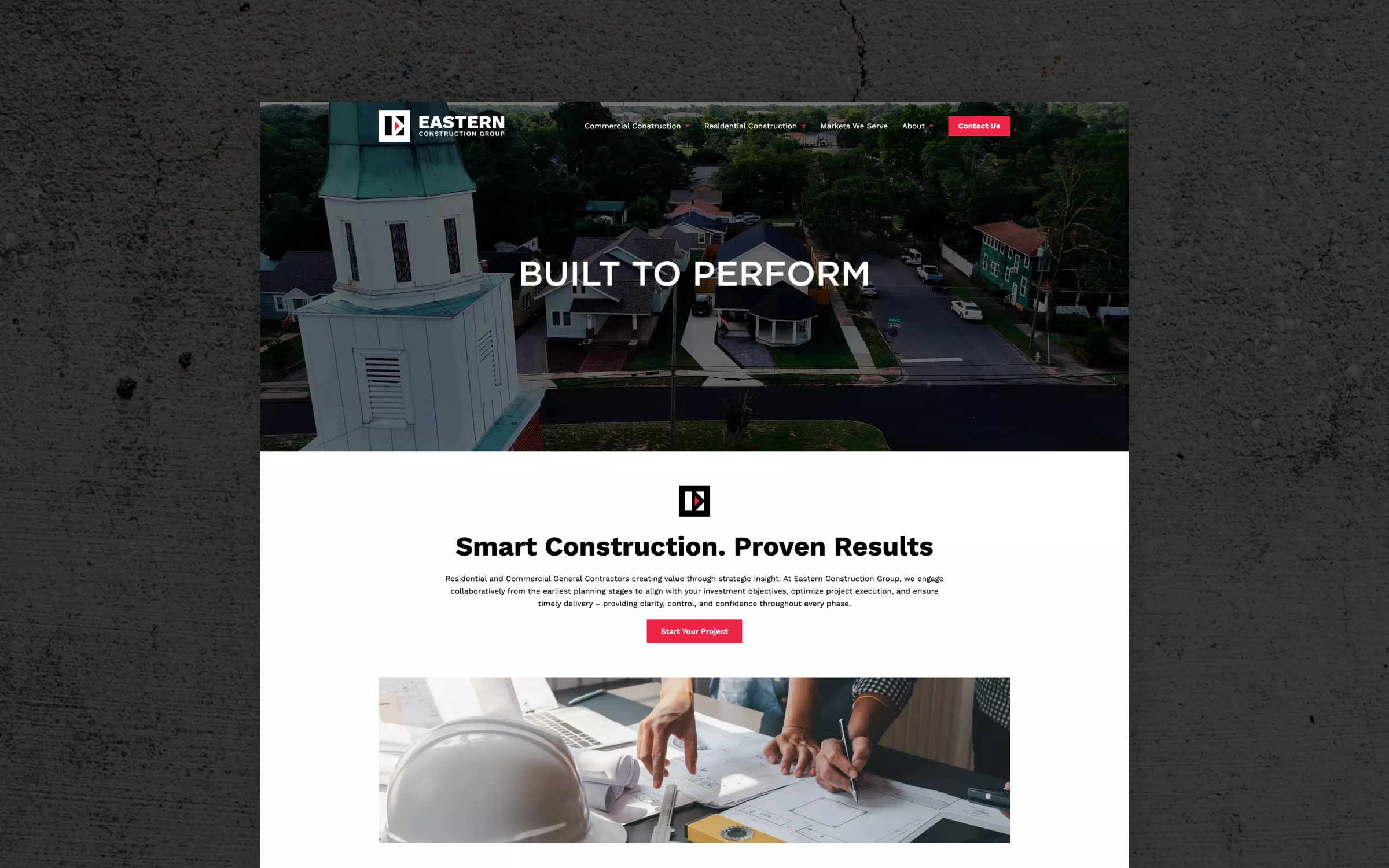For Eastern Construction Group we built a clean, professional website that highlights the company’s services and projects while making it easy for visitors to navigate. The layout features bold visuals and clear calls to action so users can quickly explore commercial and residential services and request a quote.