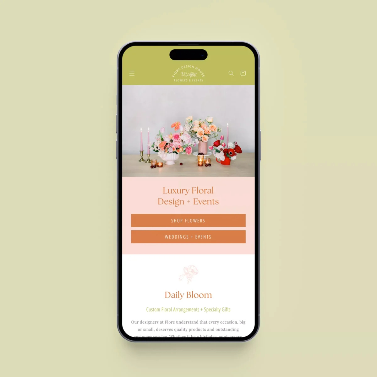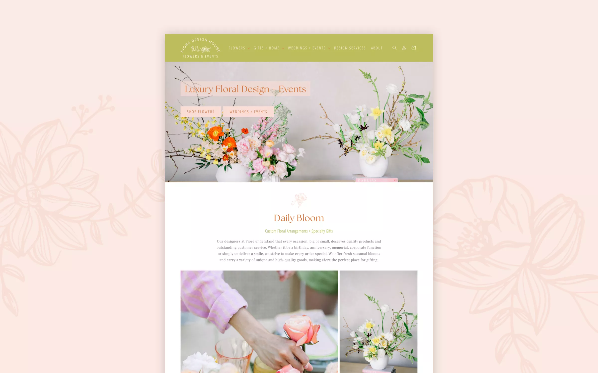 Fiore Design House turned to us to create a Shopify e-commerce website that captures their artistic flair and high standards. The site showcases their floral arrangements, event planning expertise, and curated gifts with a visually rich, easy-to-navigate design. Prioritizing clean layouts, mobile responsiveness, and intuitive browsing, we built an experience that reflects their brand and supports their continued growth.