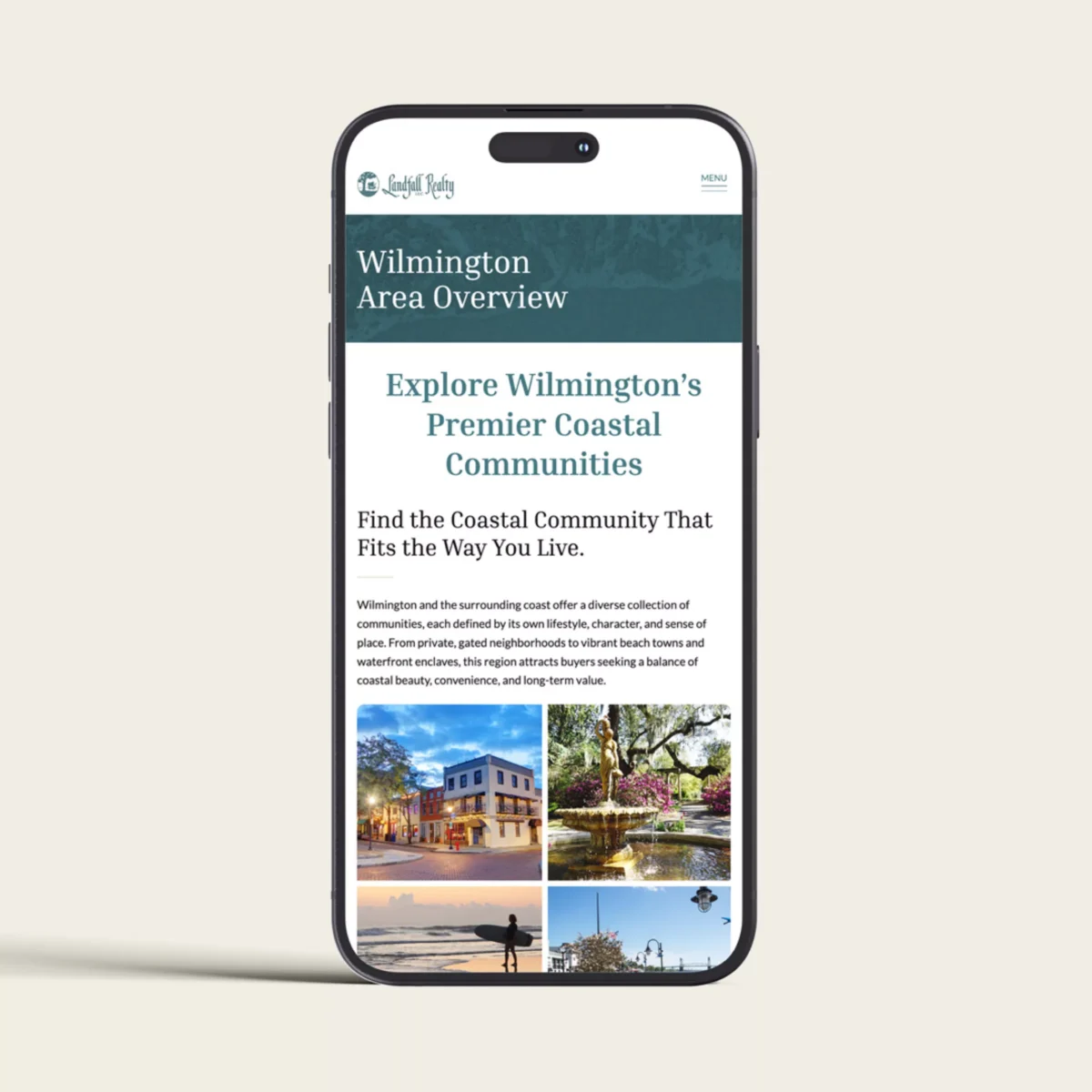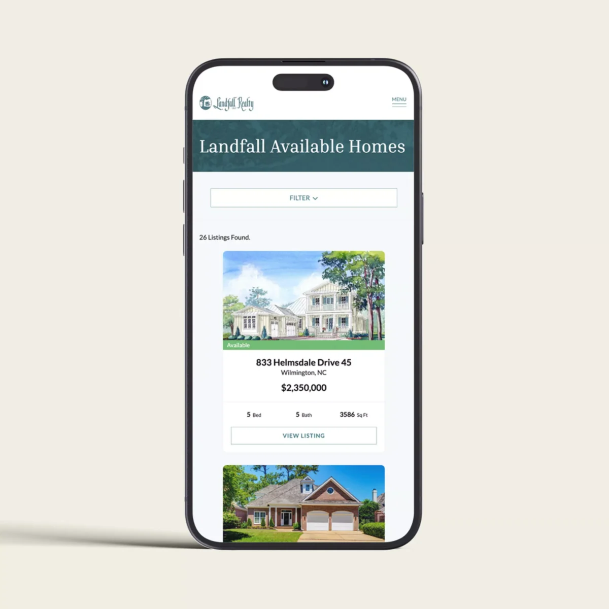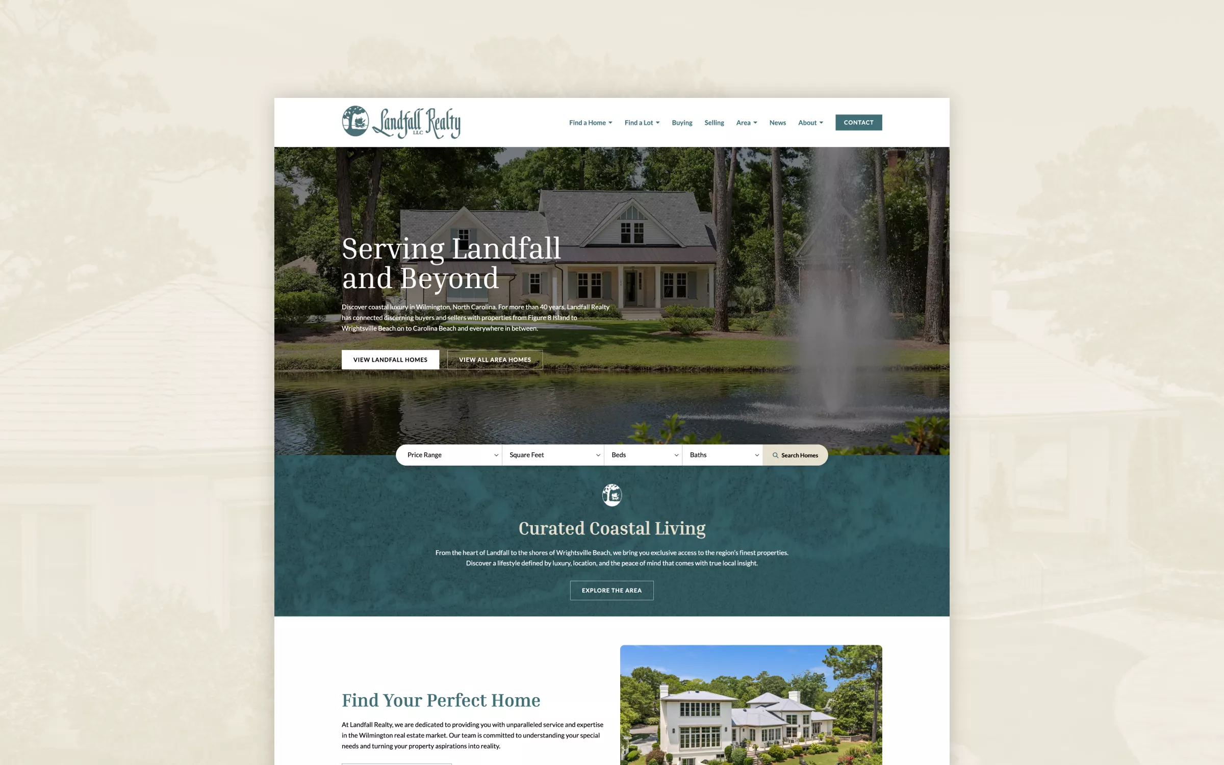 We designed and developed a custom website for Landfall Realty that highlights their position as the go-to real estate experts within the Landfall community. The site was built to showcase listings, simplify property searches, and present their team’s local expertise in a clean, user-friendly experience.