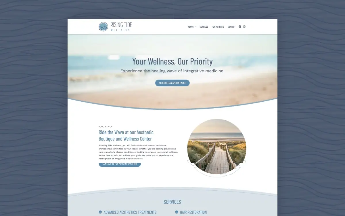 Rising Tide Wellness Center offers holistic mental health services rooted in compassion and connection. They needed a brand identity and website that reflected their calming, client-first philosophy. We delivered a soothing new logo and a thoughtfully designed website that builds trust, enhances credibility, and makes it easy for patients to engage.