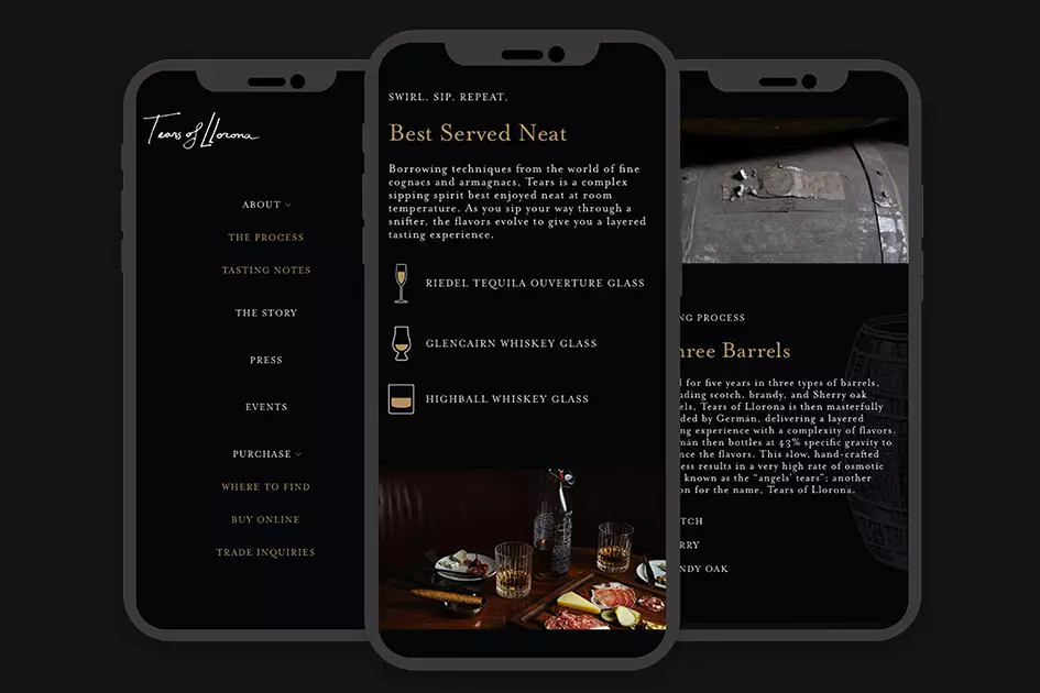 Tears of Llorona is small batch, high end sipping tequila for a refined audience. A highly coveted brand, it sells out annually but needed a website that exemplifies the craftsmanship of the product.