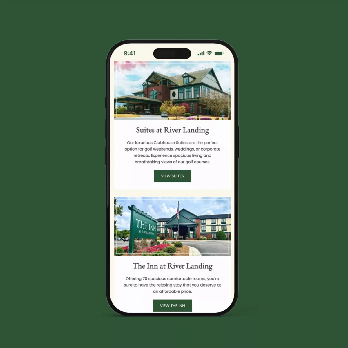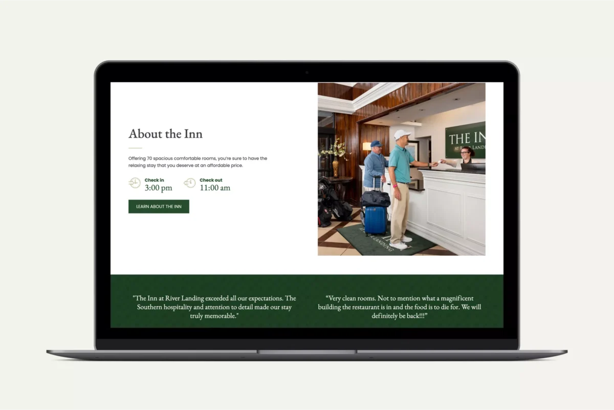 We designed and developed a custom hospitality website for The Inn at River Landing focused on showcasing the property, amenities, and overall guest experience. The site was built to simplify room exploration, highlight key features, and drive direct bookings through a clear, user-friendly interface.