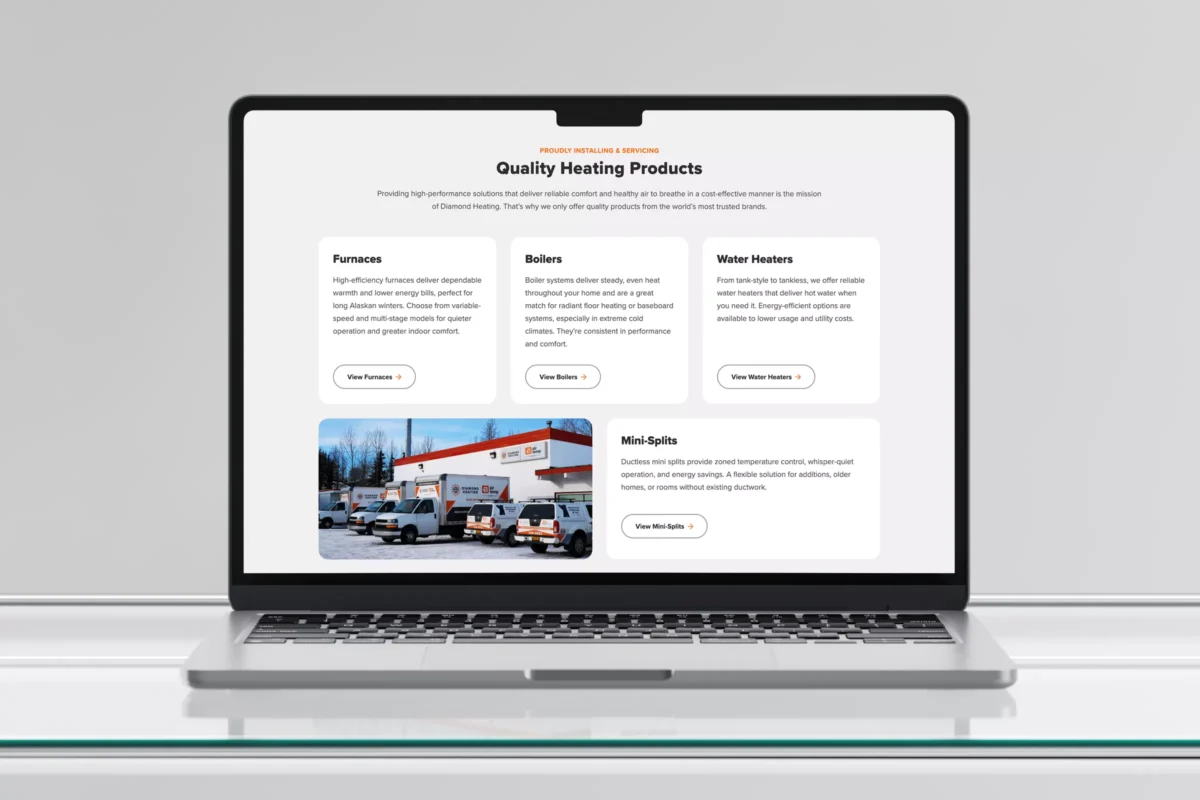 “With multiple conversion opportunities, Diamond Heating’s website was designed to easily turn visitors into longtime clients.”